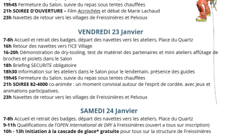 23h – Navettes retour (Freissinières et Pelvoux) - sur inscription dans le salon